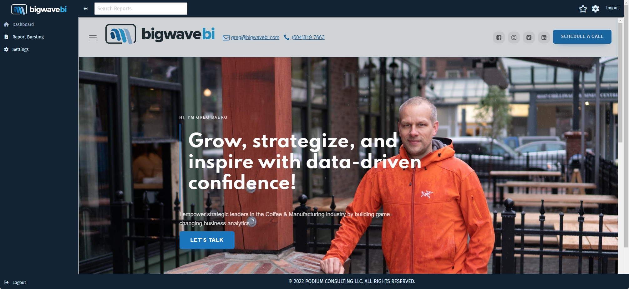 When someone from Big Wave BI logs in they see a completely different user experience
