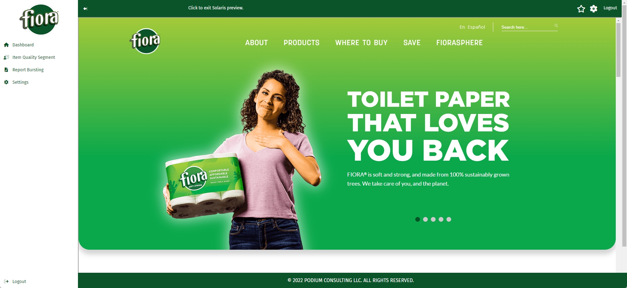 When someone from Fiora logs in they see their reports and their branding.