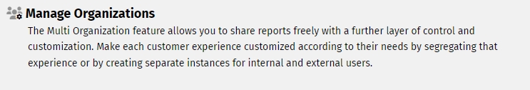 Let 's you setup custom domains, support for Google Analytics and Google Tag Manager, and create unique experiences using or Multi Org feature.